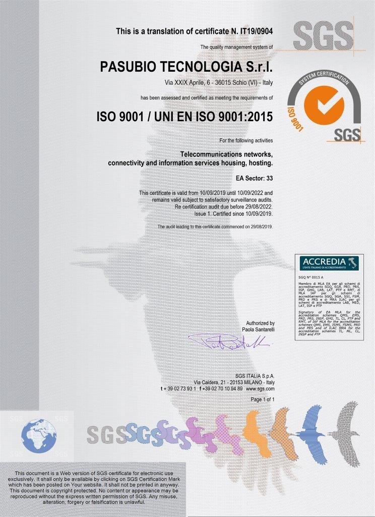 Descrizione Tipologia di documento Certificazione 2025 PST ISOIEC9001 2015 ITA (File pdf 954,12 kB) 2019 PST ISOIEC9001 2015 ENG (File image/jpeg 154,85 kB) 2022 PST ISOIEC9001 2015 ITA (File pdf 1,46 MB) 2023 PST ISOIEC9001 2015 ITA (File pdf 1,81 MB) Ufficio responsabile/proponente del documento Pasubio Tecnologia Ulteriori dettagli